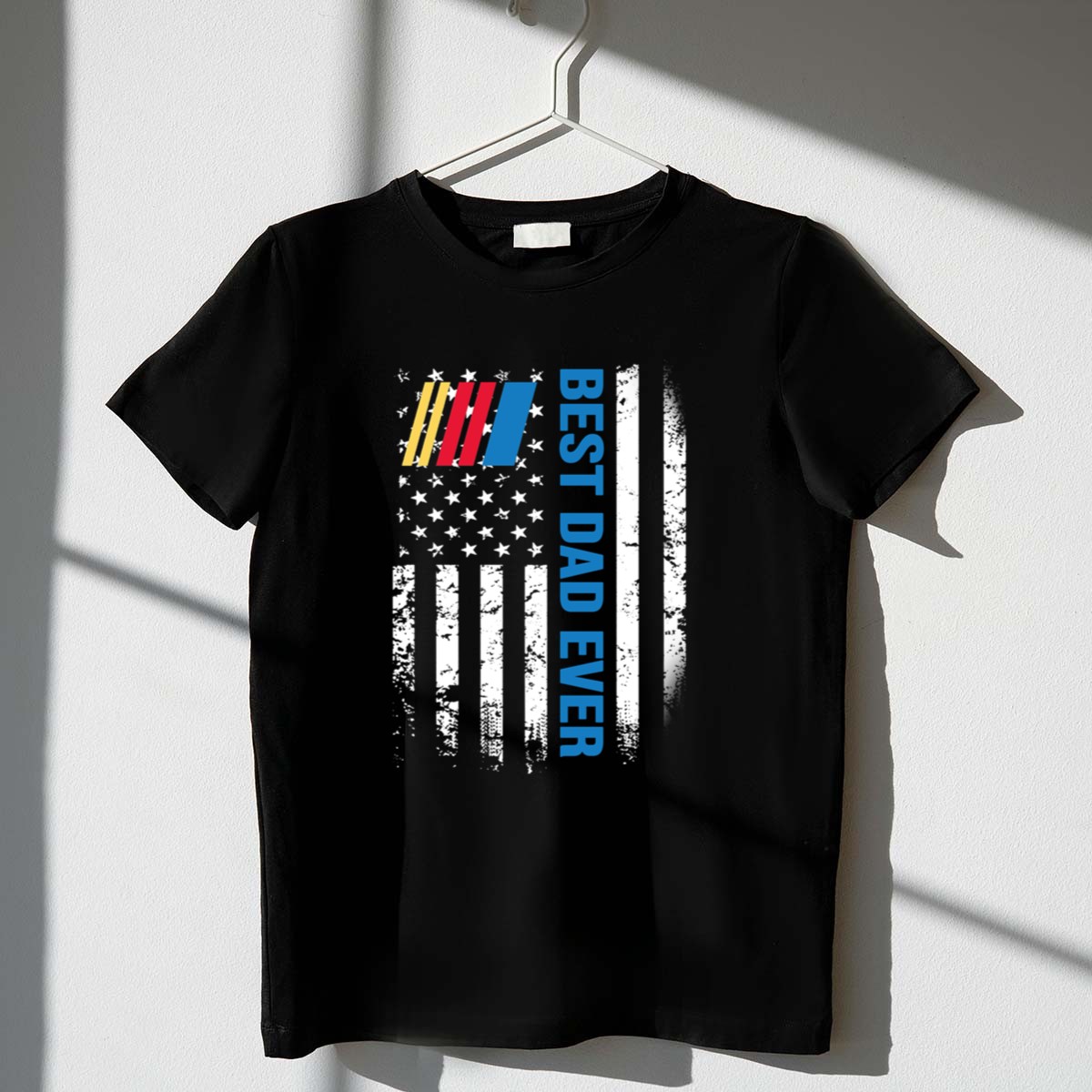 This design captures the essence of family pride and the excitement of the NASCAR race, framed by the iconic American flag. It’s a heartfelt tribute to fathers who embody both the thrill of the race and a deep love for their country, making it perfect for celebrations that honor both. The modern streetwear style resonates with those who appreciate a bold yet meaningful expression of patriotism.