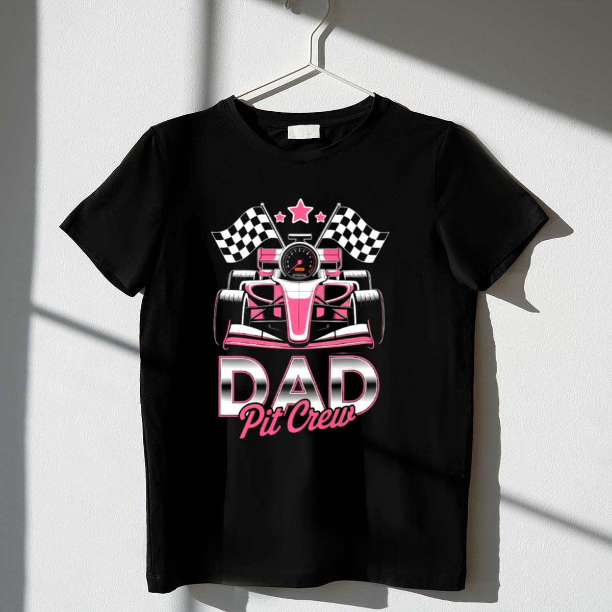 This design embodies the thrill of racing and the cherished moments shared between families. With a vibrant pink racing car and playful checkered flags, it invites everyone to celebrate not just the sport, but also the joy of family togetherness. It’s a reminder of dad’s special role as the ultimate pit crew, making every race day a memorable occasion.