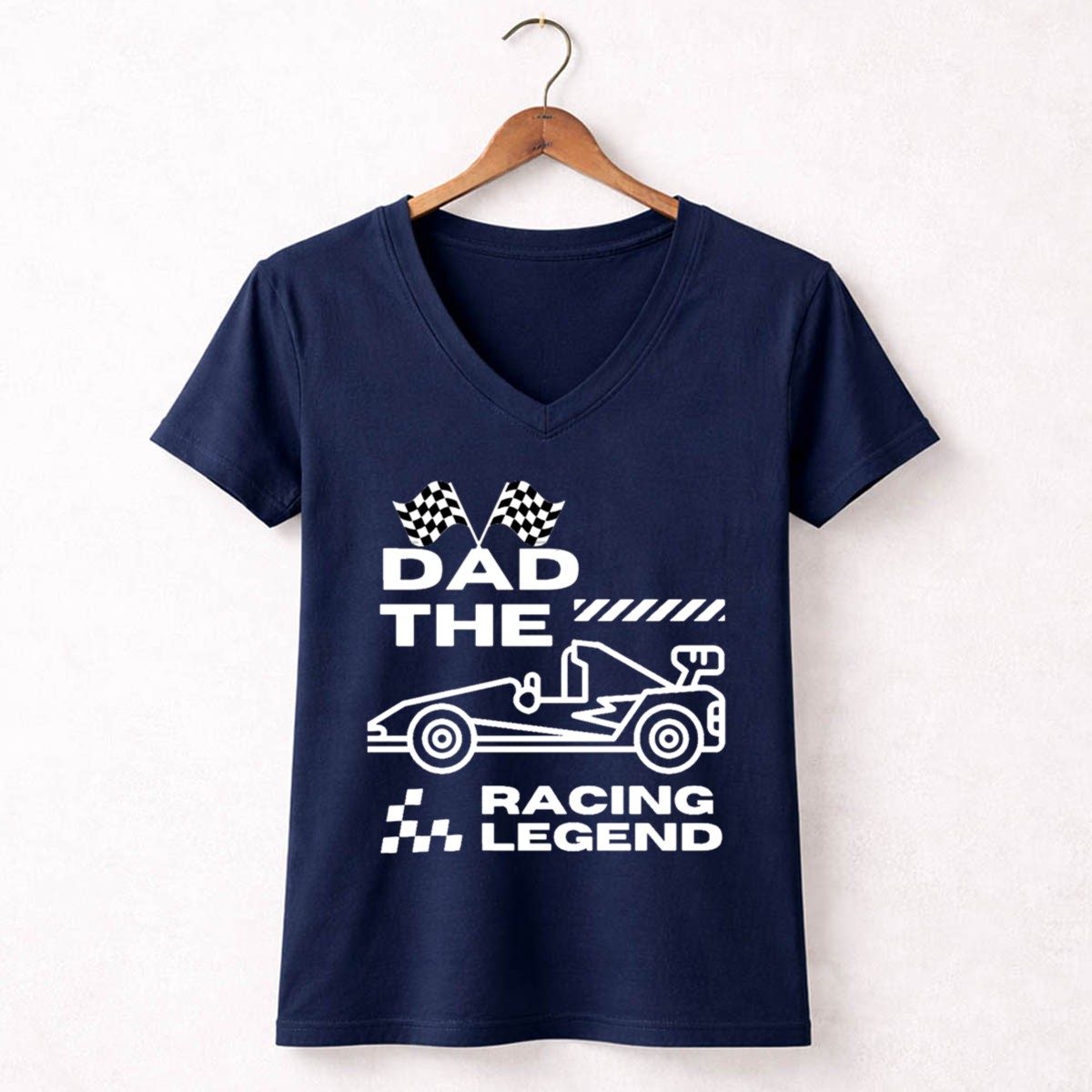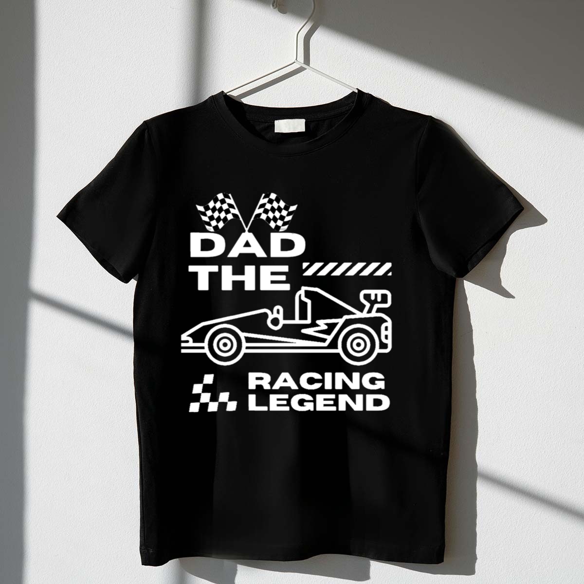 This design captures the essence of a racing legacy, blending a striking race car graphic with checkered flags. It reflects the thrill of speed and the pride of being a racing dad, serving as a conversation starter and a badge of honor for those who live for the tracks. It’s more than just apparel; it’s a heartfelt tribute to the fathers who inspire future generations of auto racing enthusiasts.