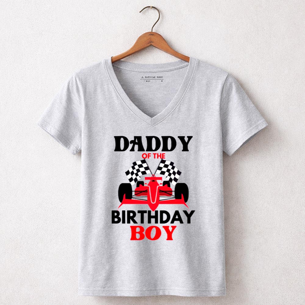 This design encapsulates the excitement of a birthday celebration with a nod to the thrilling world of racing. Featuring bold typography and playful graphics of racing cars and checkered flags, it reflects the joy and pride fathers feel as they celebrate their child’s special day. It’s more than just a shirt; it’s a heartfelt reminder of the memorable moments shared between dad and son.