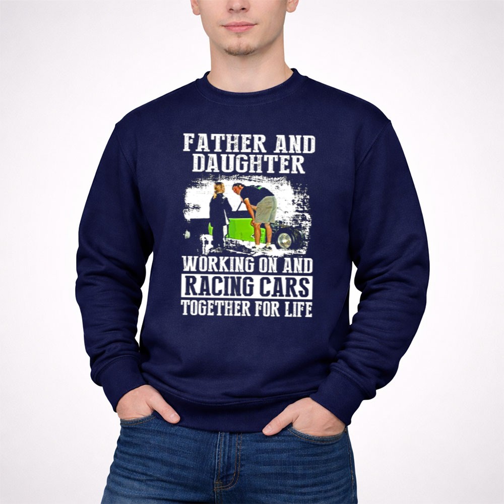 This design reflects the deep-rooted connection between a father and daughter as they share their passion for cars. The playful graphics and inspirational quote highlight their journey of working together, from car restoration to racing day memories, celebrating the joy of creating lasting bonds in the automotive world.