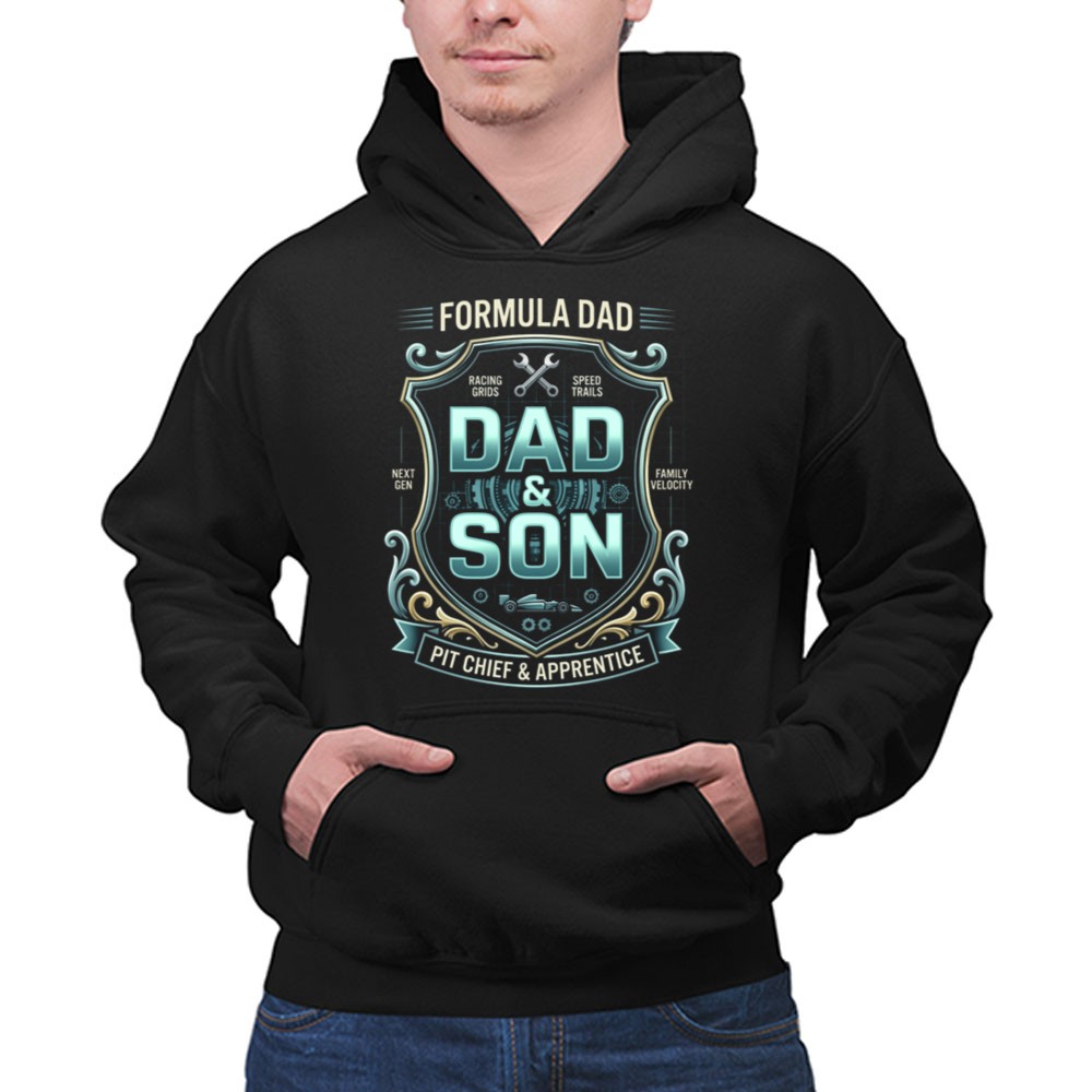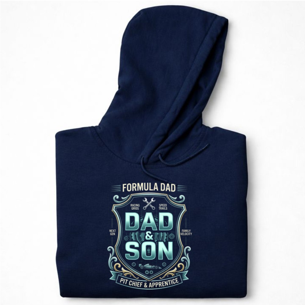 Inspired by the vibrant world of Formula racing, this hoodie embodies the spirit of family bonding through a shared passion for speed and competition. The vintage automotive design, featuring racing grids and speed trails, speaks to the legacy of fathers passing down their love for the sport to their sons. It’s a heartfelt tribute to the adventures and memories created together on and off the track.
