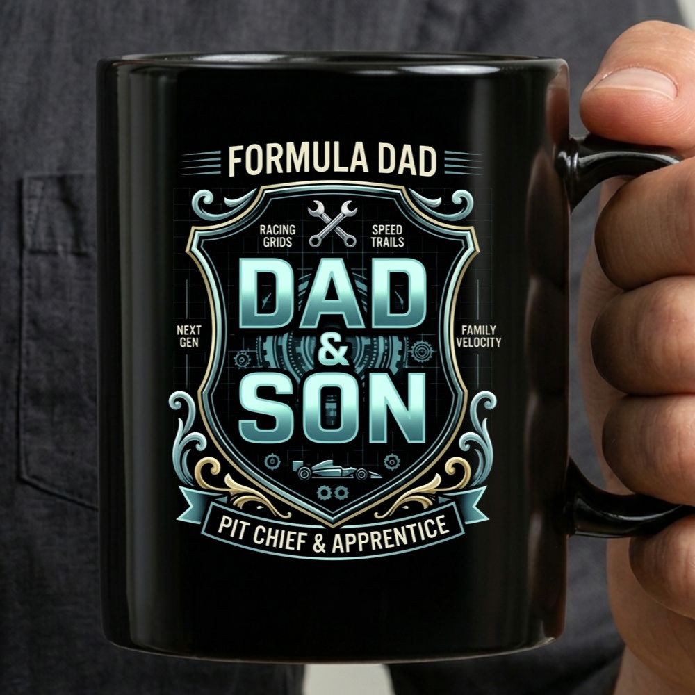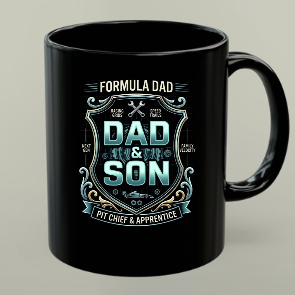 The Formula Dad and Son Pit Chief design embodies the spirit of racing and the powerful bond between father and son. With racing grids and speed trails, it reflects the excitement of shared experiences on and off the track. This mug serves as a daily reminder of legacy, teamwork, and the joy that comes from nurturing the next generation of racing enthusiasts.