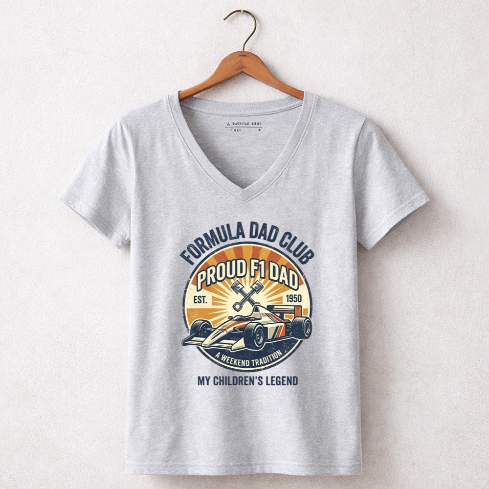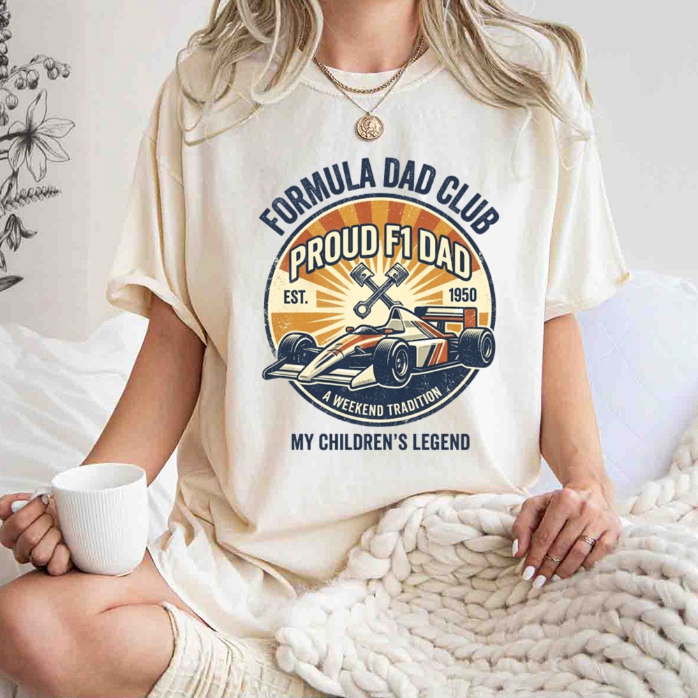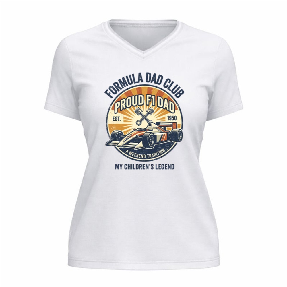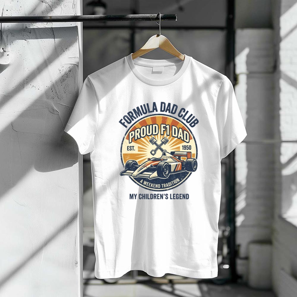 The ‘Formula Dad Club Vintage’ design honors the deep-rooted connection between fathers and their children, captured through the thrilling lens of Formula 1 racing. With its vintage flair, it evokes cherished memories of race day traditions and the pride of passing down a love for motorsport. This design is more than just apparel; it’s a celebration of family heritage and the legendary bonds that make each moment special.
