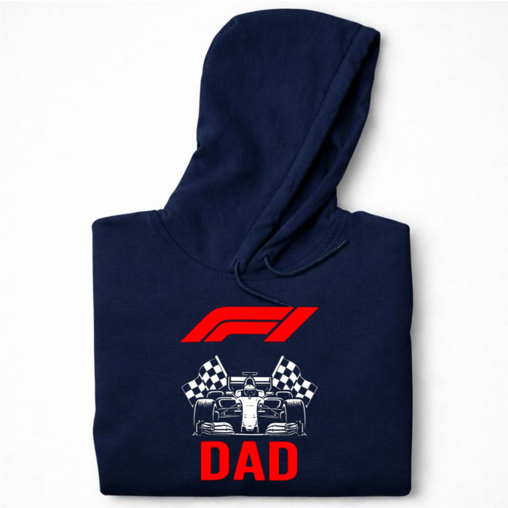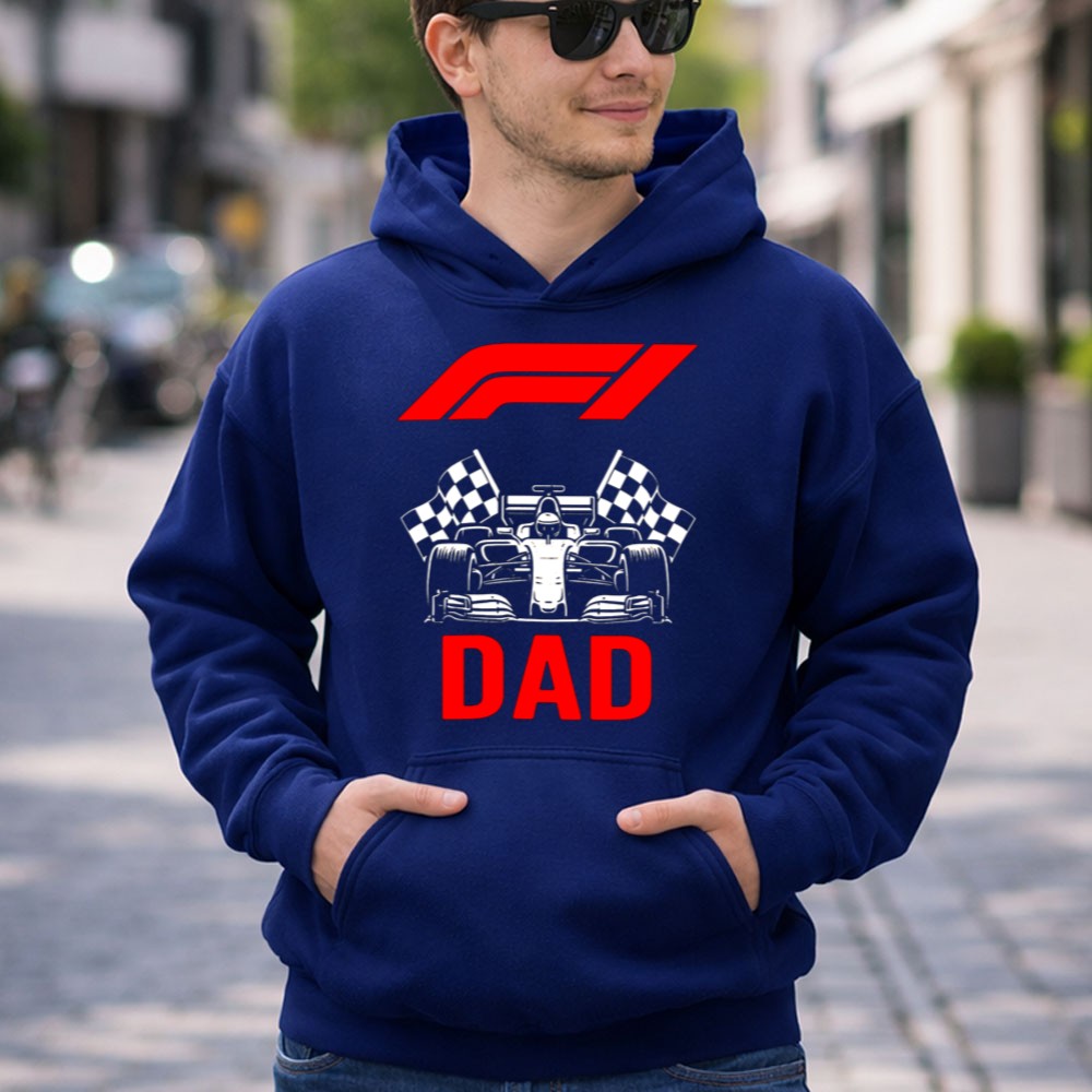 This hoodie is designed for racing dads who take pride in their love for speed and family, embracing the thrill of both worlds.