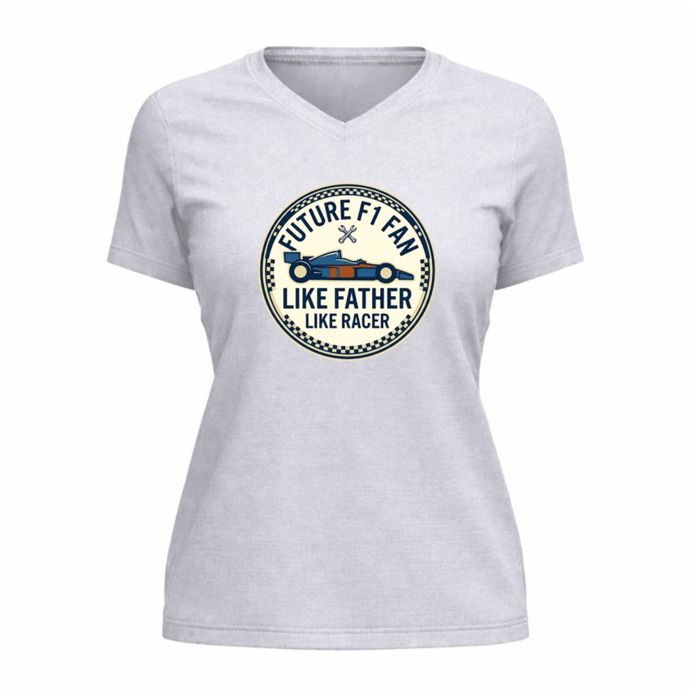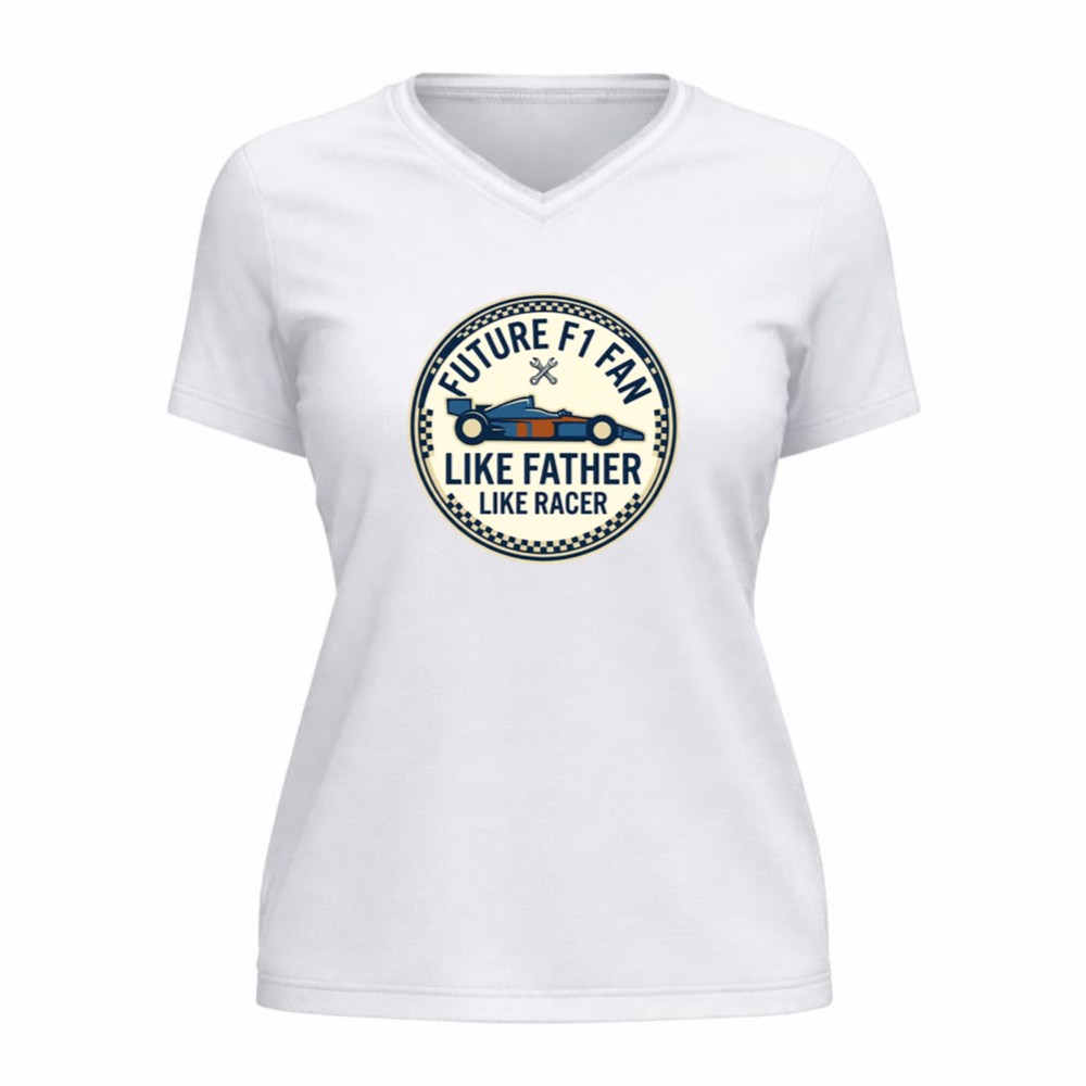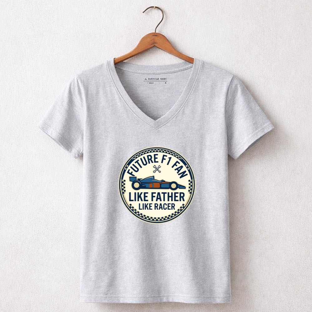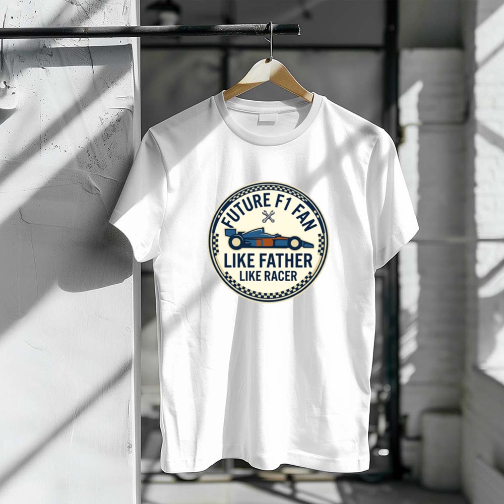 This design captures the essence of a cherished relationship between fathers and their children, showcasing a stylized formula racing car that symbolizes the thrill of motorsport. It embodies the joy of sharing a passion for racing, creating memories that last a lifetime. With its playful graphic design, this t-shirt reflects both the excitement of the sport and the bond that brings families closer together.
