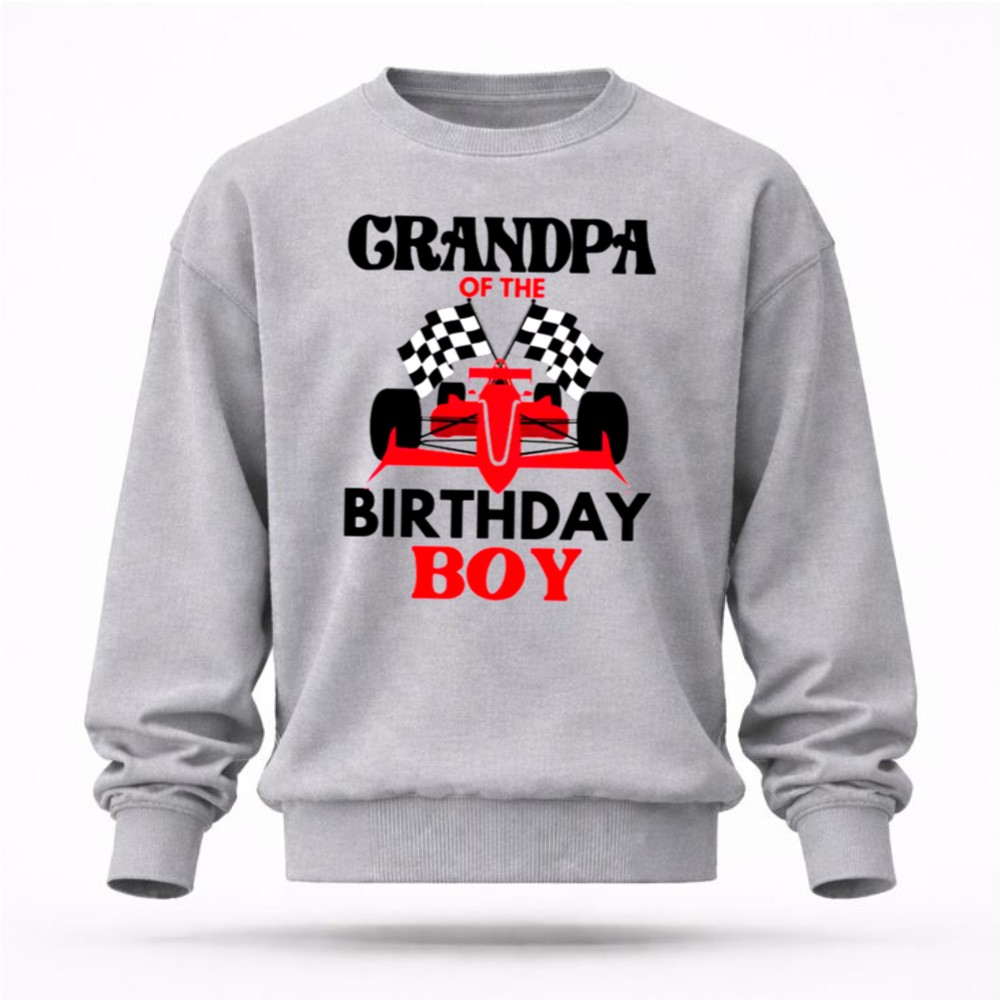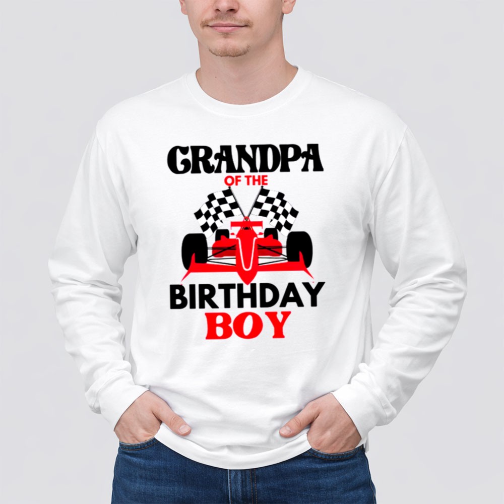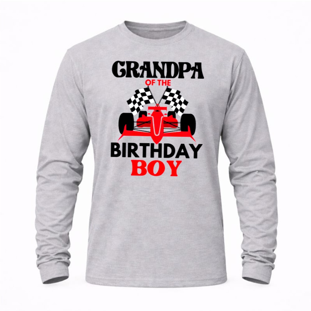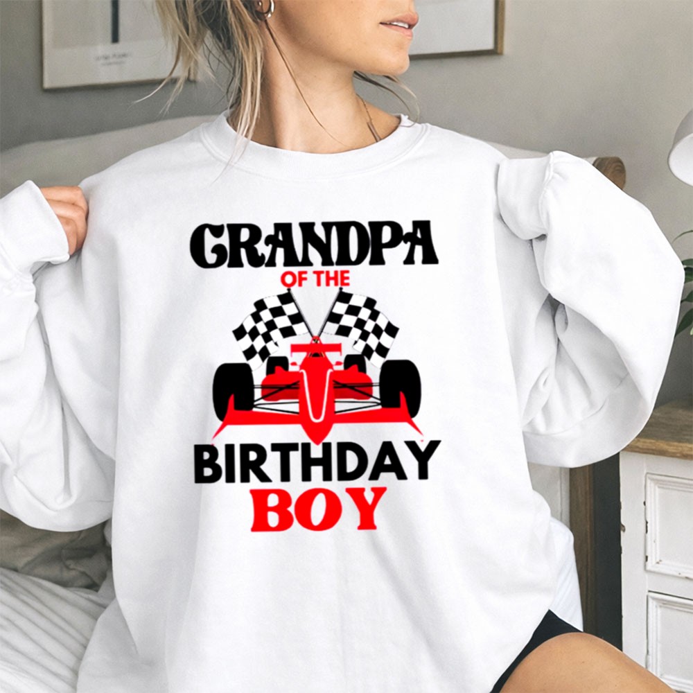 This design encapsulates the joyous spirit of family celebrations, featuring a dynamic race car and checkered flags that symbolize the thrill of racing. It’s a heartfelt tribute to grandfathers who share unforgettable moments with their grandkids, combining the joy of birthdays with a passion for speed.