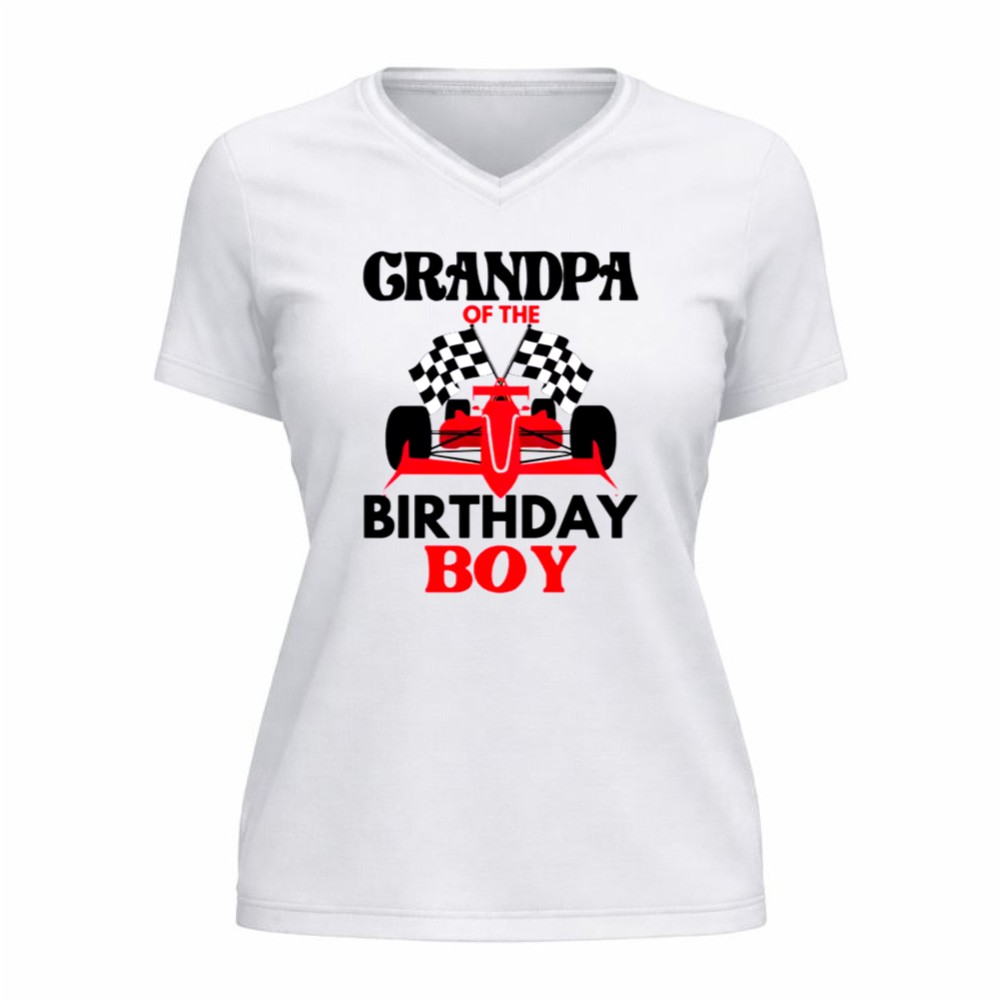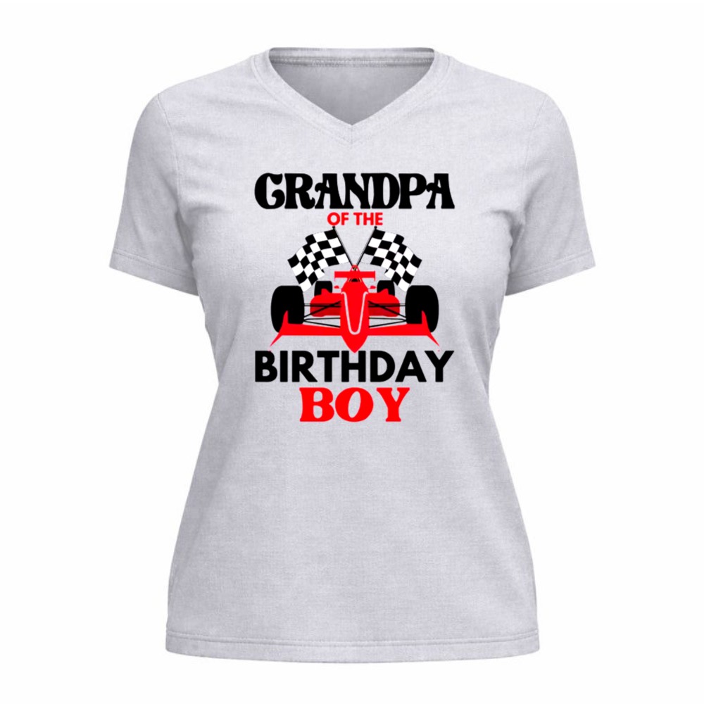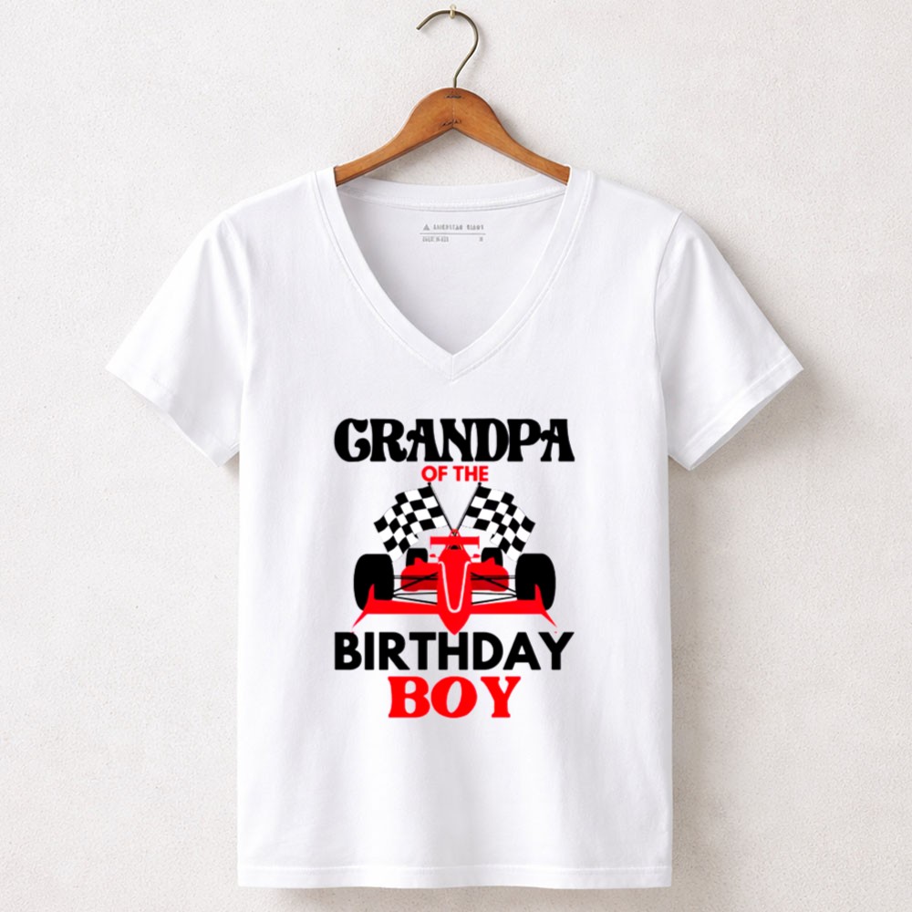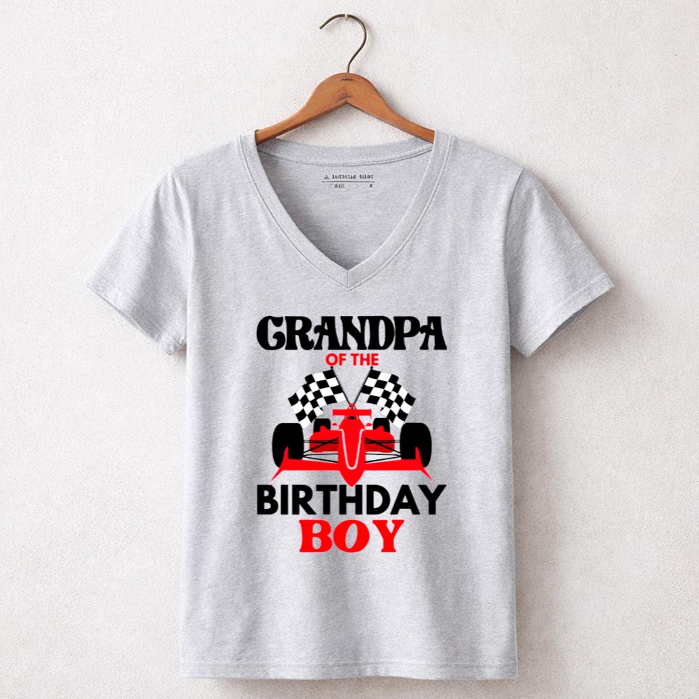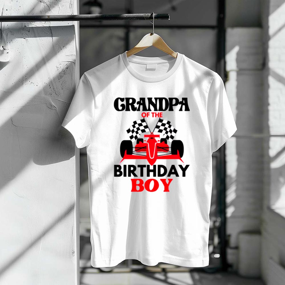 This shirt embodies the joy of family gatherings and the thrill of racing, featuring a striking red race car and checkered flags. It honors grandpas who ignite the excitement of their grandchild’s birthday, making each moment unforgettable. With its playful design, it captures the spirit of celebration and the deep bond between generations.