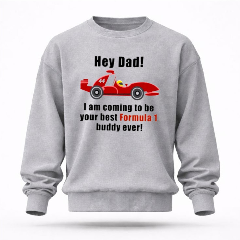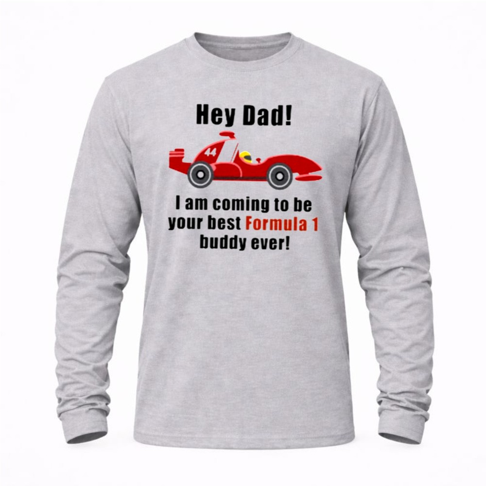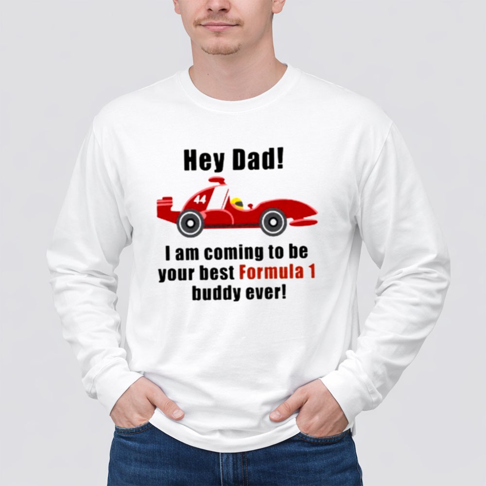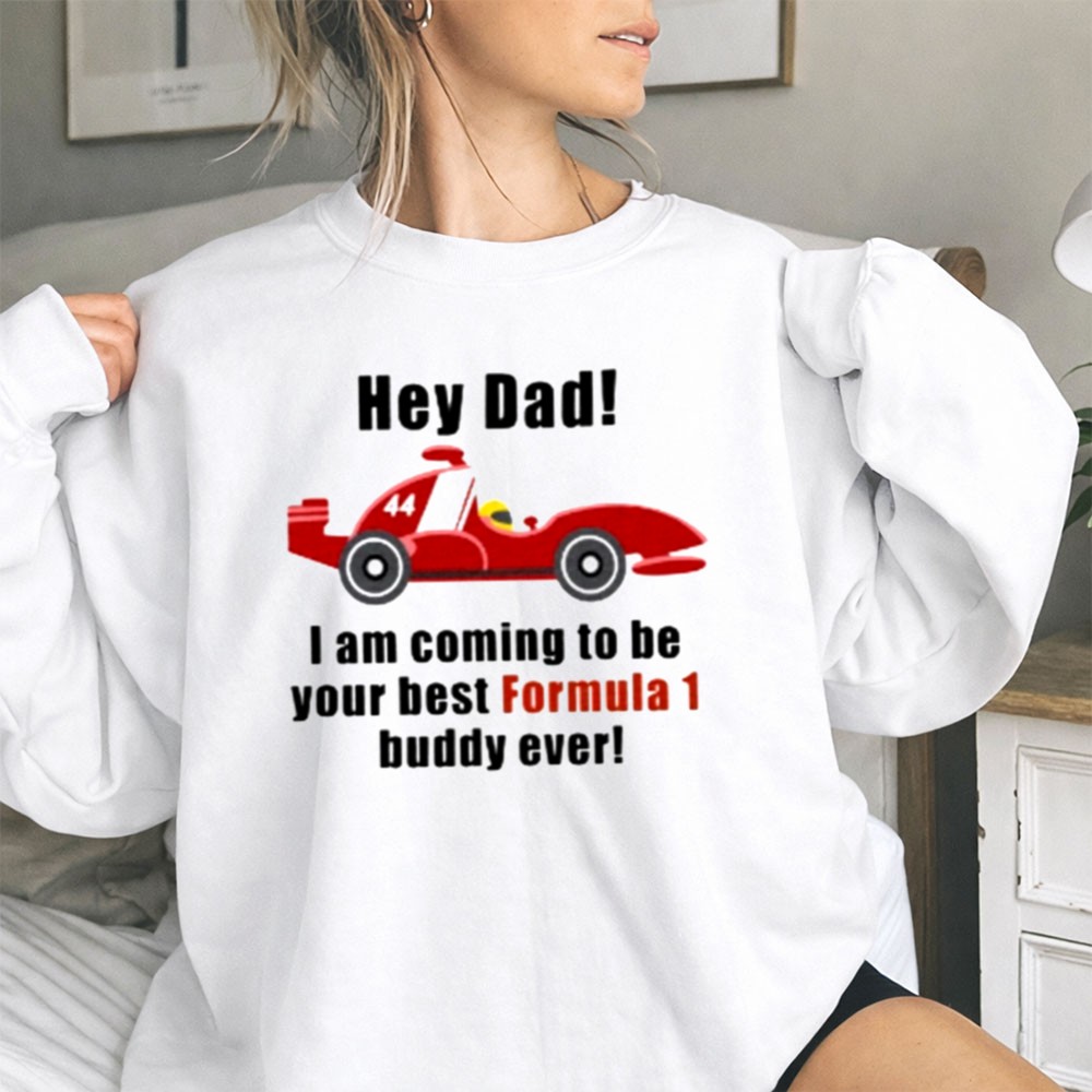 This hoodie reflects the joy of father-son moments spent cheering for Lewis Hamilton. With its playful graphic design and vibrant colors, it captures the thrill of racing and the warmth of family bonding. The sentiment, ‘Hey Dad! I am coming to be your best Formula 1 buddy ever!’ perfectly encapsulates the spirit of shared adventures at the track.