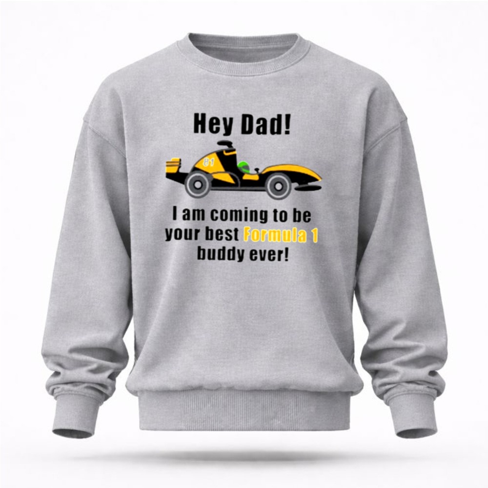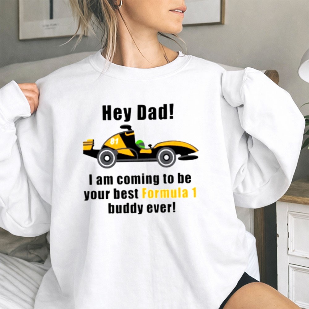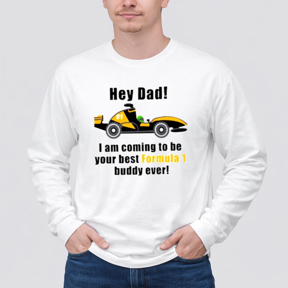 This design embodies the joy of racing and the special connection between a father and child. Inspired by the thrill of Formula 1, it captures the sentiment of a young fan eager to be their dad’s best buddy ever. With its vibrant colors and playful graphic, this hoodie is a reminder that the love for motorsport brings families together.