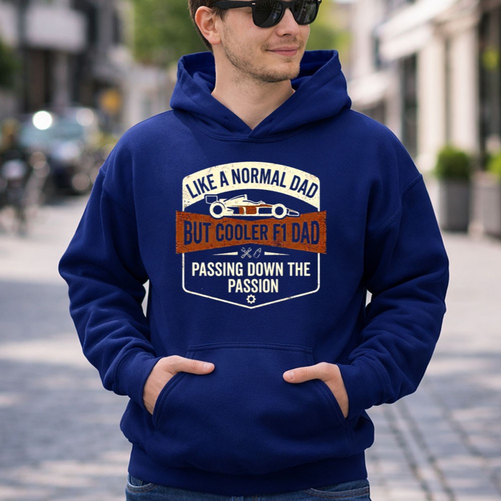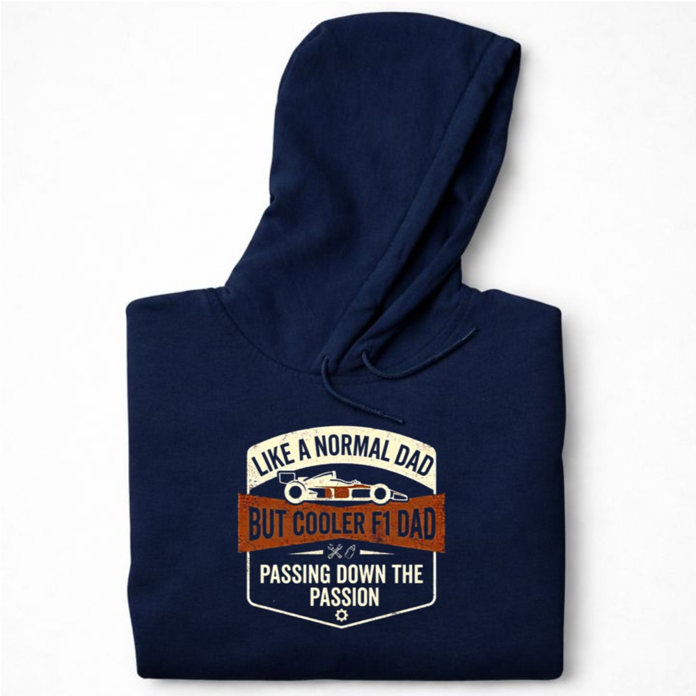 This hoodie captures the essence of a father’s pride in passing down his love for racing. The bold typography and automotive theme reflect the humor and warmth of family connections, creating a piece that not only stands out but also tells a story of legacy and shared passion.