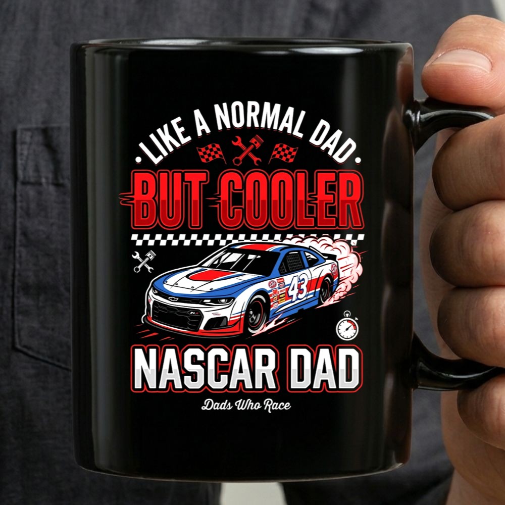 This mug, adorned with the playful slogan ‘Like A Normal Dad But Cooler – NASCAR Dad’, embodies the pride and joy that comes with being a racing enthusiast. The vibrant cartoon art reflects the energy of the racetrack, while the modern graphic style connects with the fun-loving spirit of dads who live for the thrill of the race. It’s more than just a mug; it’s a celebration of fatherhood and NASCAR culture.