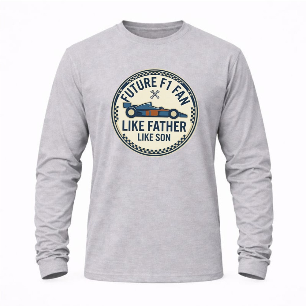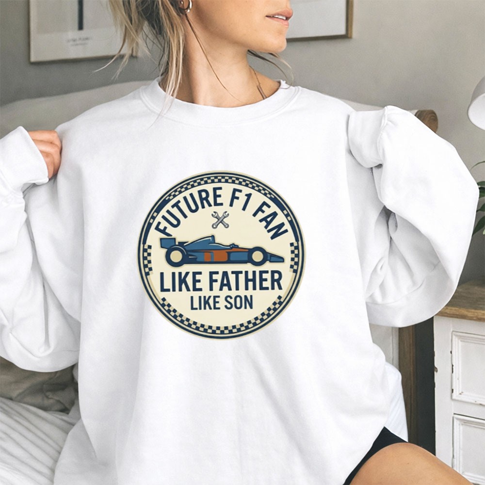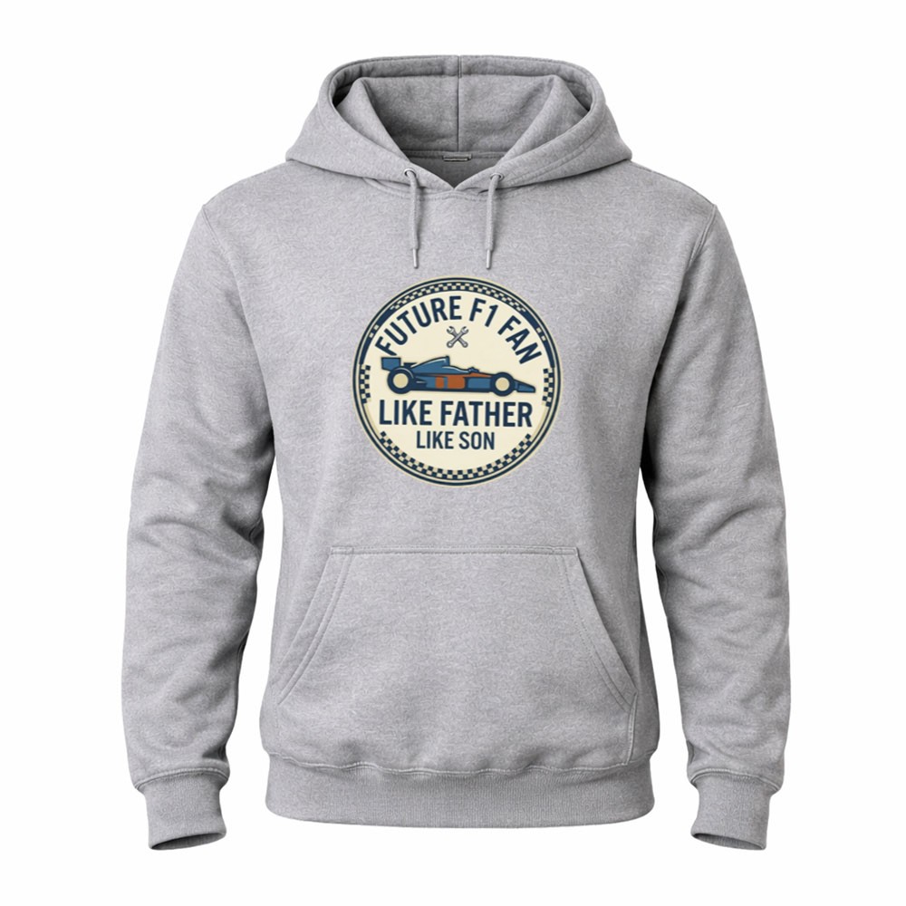 This design captures the essence of a family’s racing heritage, where the thrill of motorsport is passed down from father to son. With its minimalist aesthetic and modern vibe, the hoodie serves as a canvas for memories made on game days and family outings, embodying the joy of shared moments and the excitement of future races together.