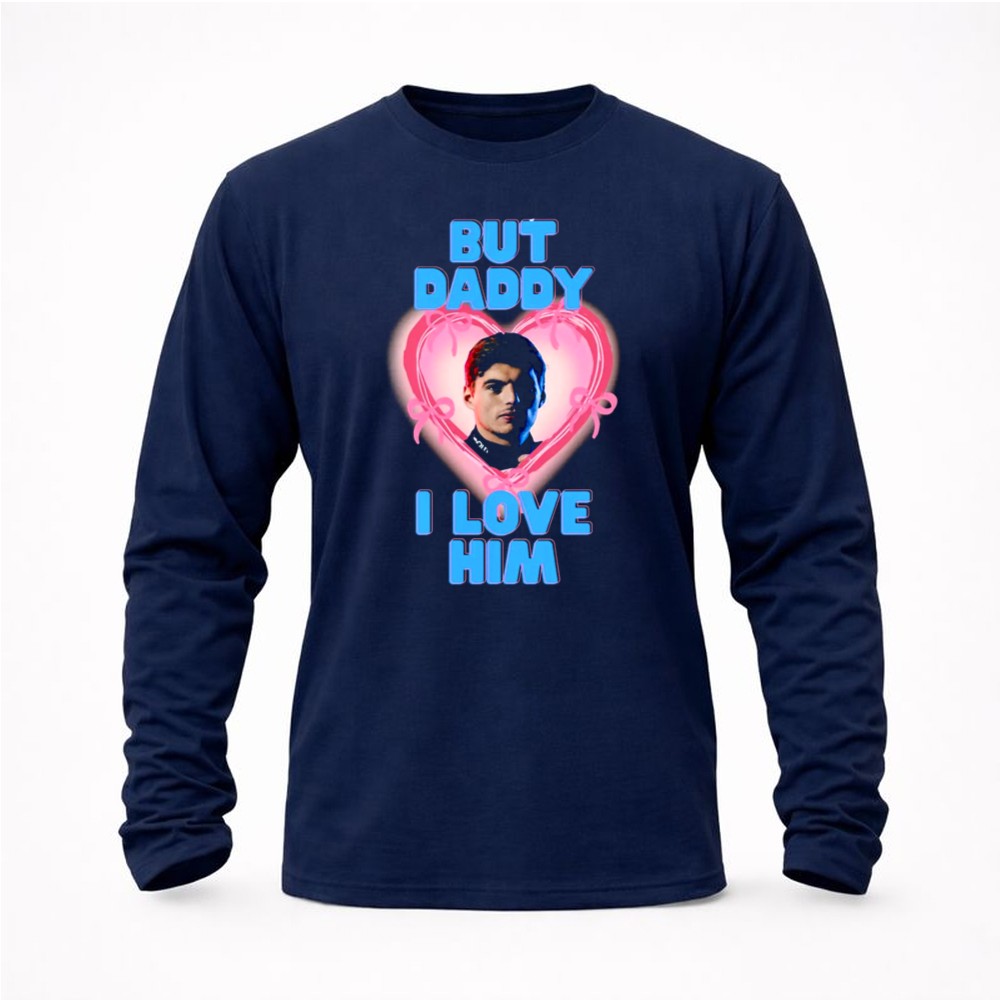 This design beautifully reflects the connection between a child and parent through the excitement of Formula 1. With the heartwarming message ‘But Daddy I Love Him’ alongside Max Verstappen’s image, it captures the essence of racing love and family pride. The bold and playful graphic design invites fans to embrace their passion for motorsport while cherishing their loved ones.