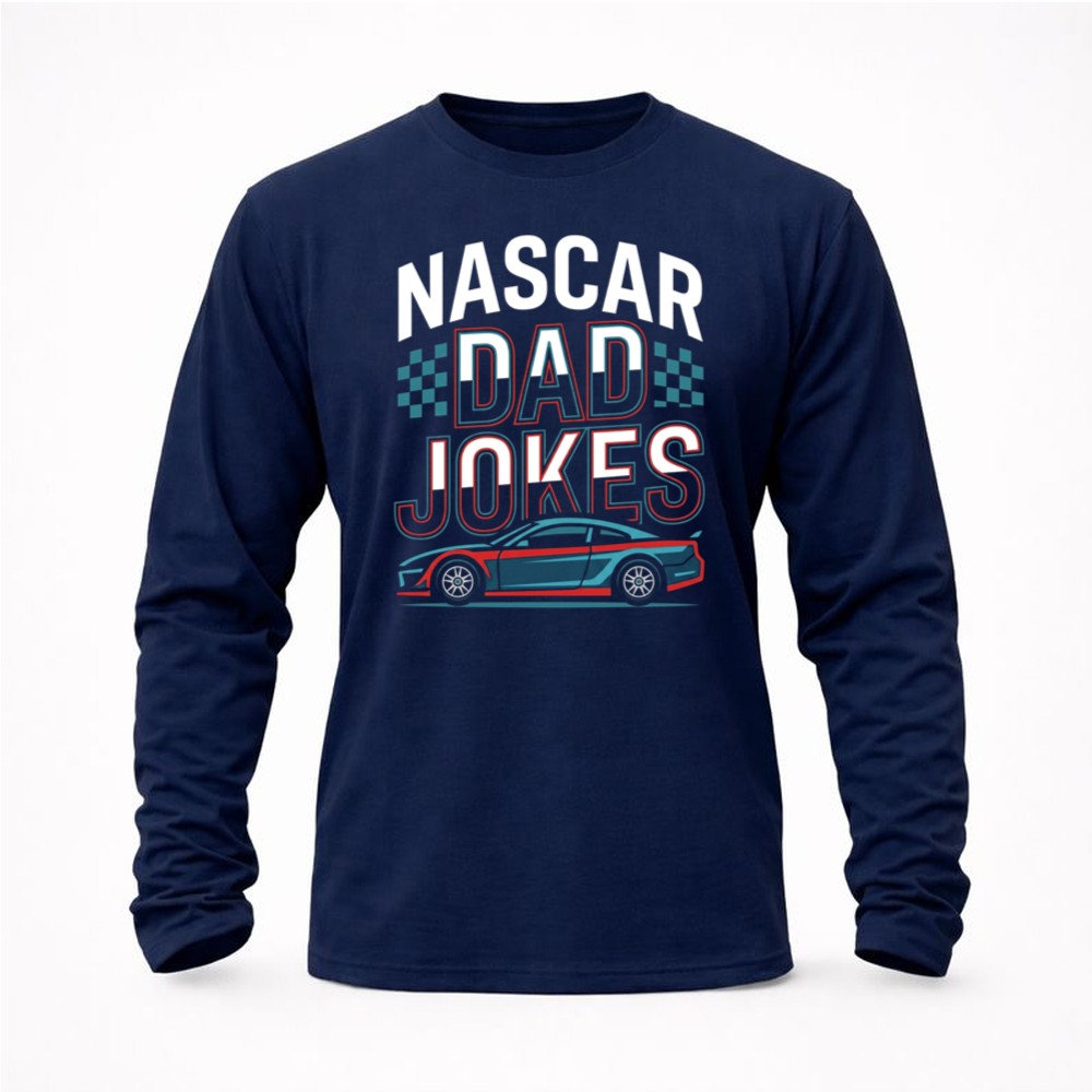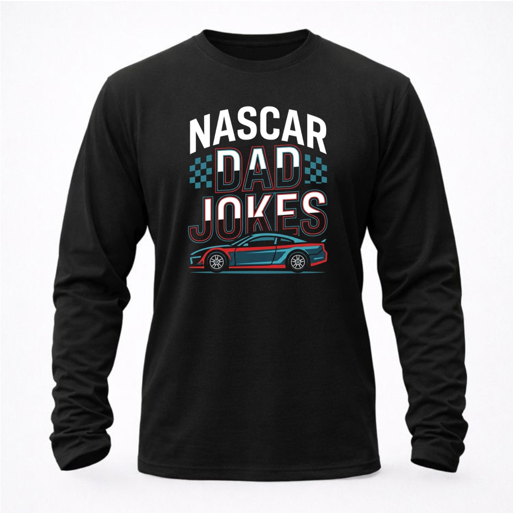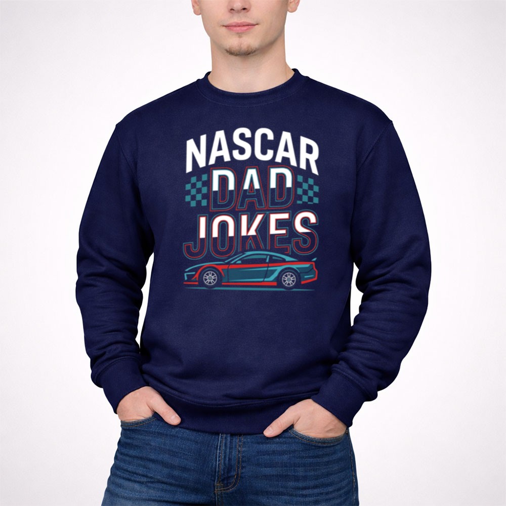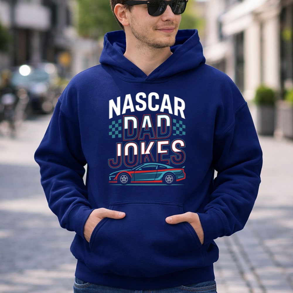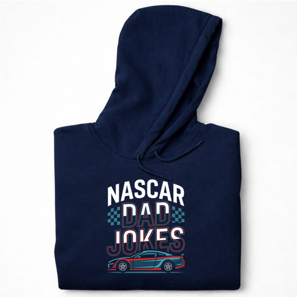 This hoodie brings together the thrill of NASCAR and the humor of dad jokes, creating a heartwarming piece that resonates with racing families. The bold typography and sleek car illustration reflect the excitement of the racetrack, while celebrating the laughter that strengthens family bonds. It’s a reminder that the best memories are often shared with a good joke.