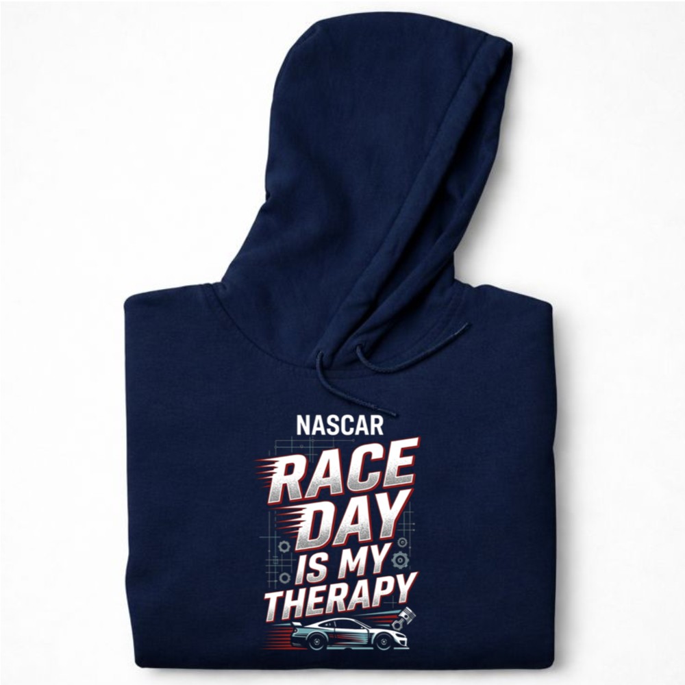 Inspired by the exhilarating atmosphere of NASCAR racing, this hoodie captures the essence of what race day means to true fans. The sleek race car graphic paired with bold typography symbolizes the thrill and joy that comes from the track, creating a sense of camaraderie among fellow enthusiasts while celebrating the automotive lifestyle.
