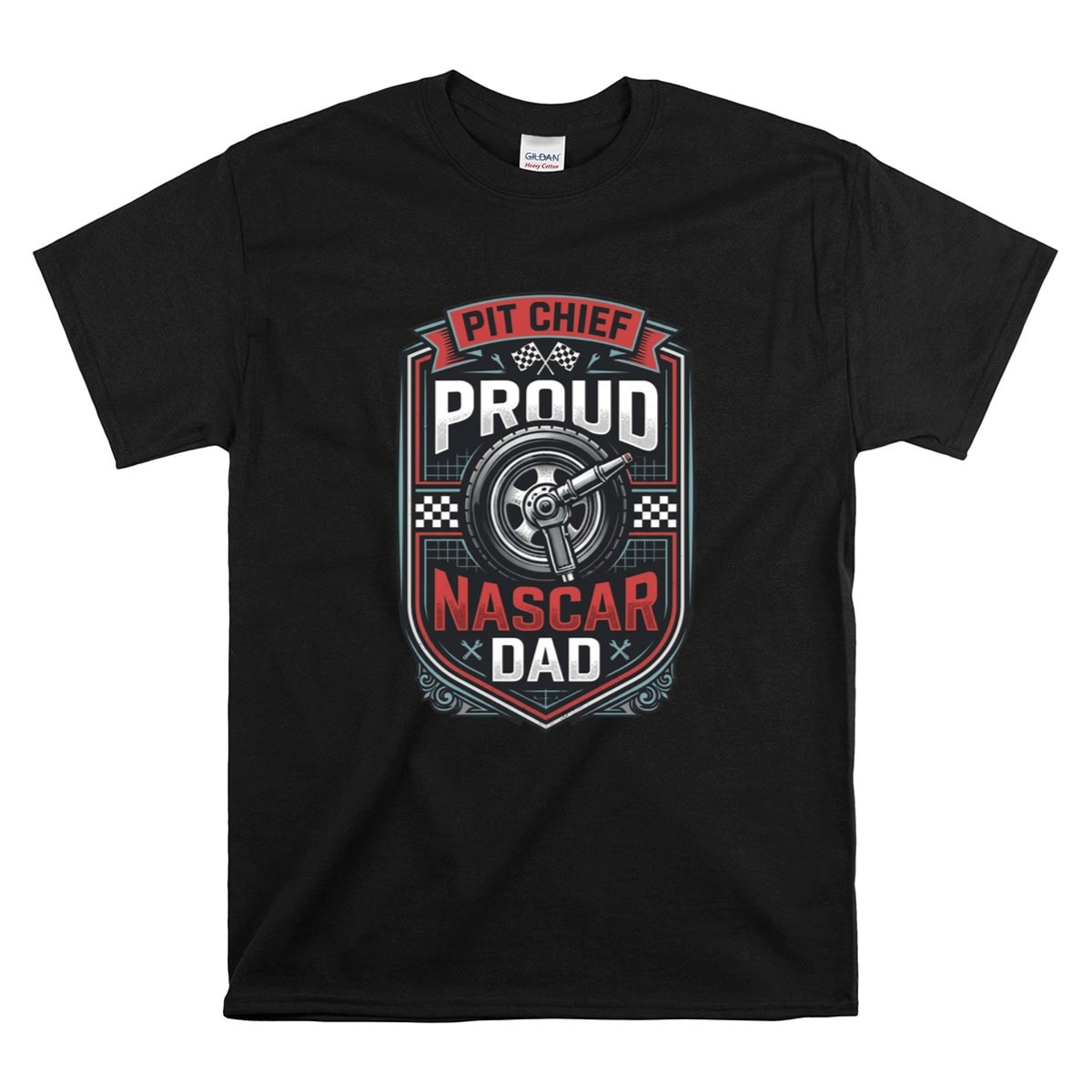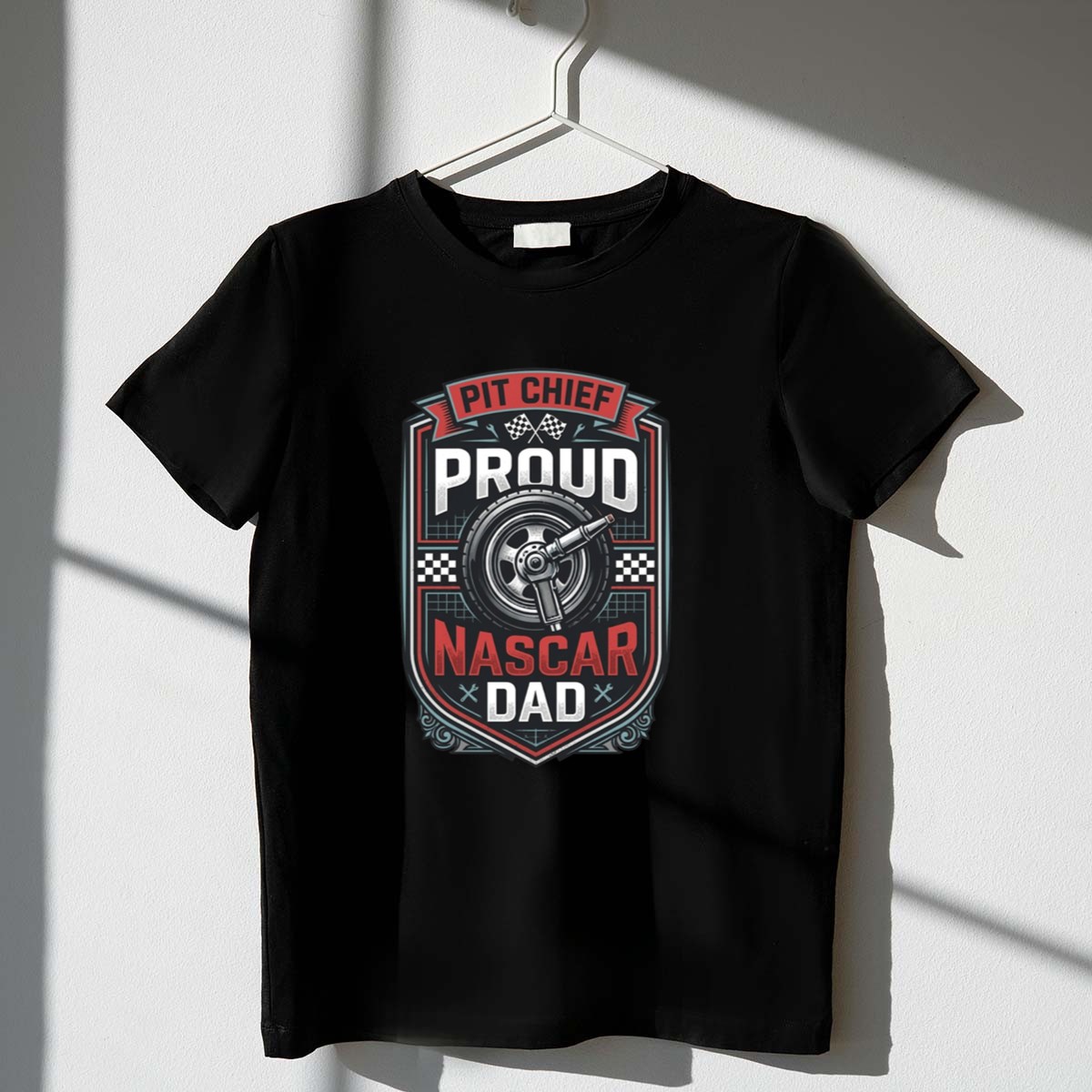 Showcase your pride as a Nascar dad with this striking pit chief design featuring classic racing elements.