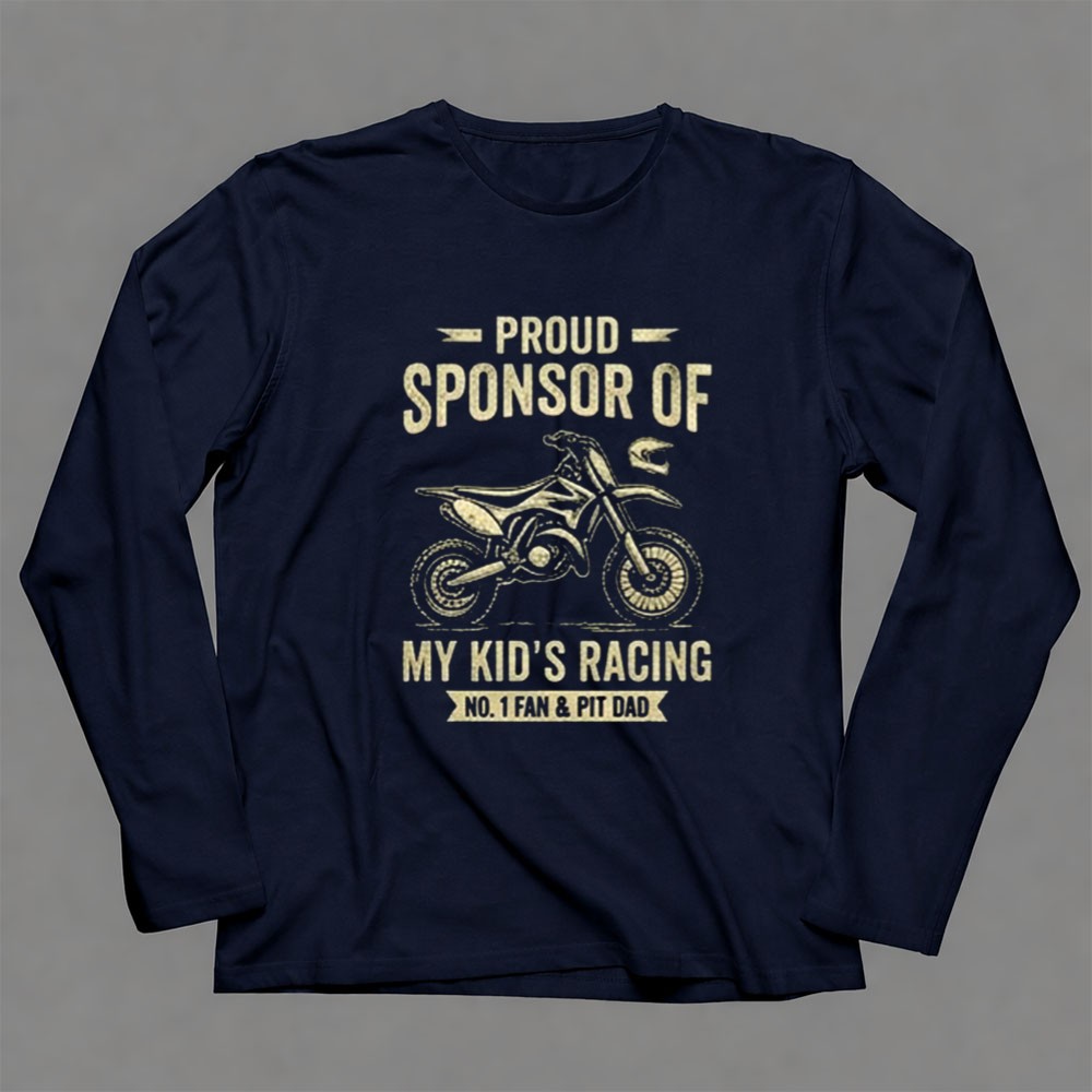 This design captures the joy of being a supportive parent at the racetrack, combining humor and pride in a minimalist style. The bold typography and graphic of a dirt bike reflect the excitement of racing while celebrating the unique bond between a father and his child. It’s a heartfelt reminder that every cheer counts in the world of motorsport.