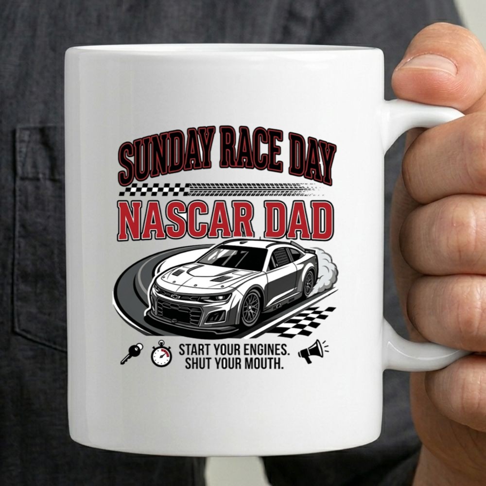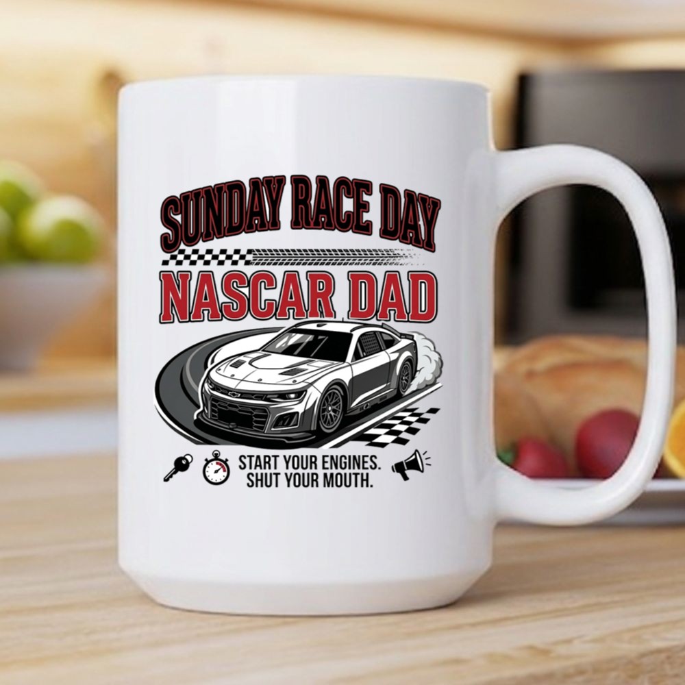 The ‘Sunday Race Day NASCAR Dad’ design captures the thrill of the race, blending humor with the deep-rooted traditions of family gatherings. This piece serves as a tribute to fathers who live for the adrenaline of motorsport, making each race day not just an event, but a cherished occasion to bond and celebrate together.