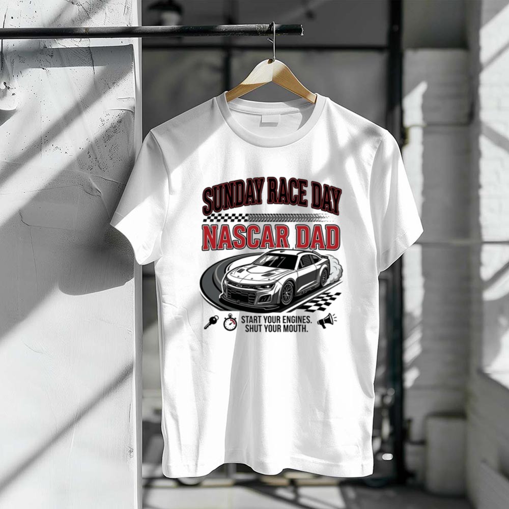 This design encapsulates the electrifying atmosphere of race day, where the roar of engines and the laughter of loved ones merge. The humorous slogan, ‘Start your engines. Shut your mouth,’ pays tribute to the spirited tradition of NASCAR, making it a perfect symbol for fathers who cherish these moments with their kids. It’s a reminder of the joy found in racing culture and family togetherness.