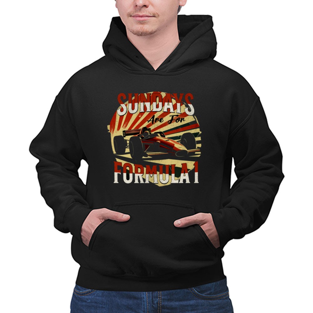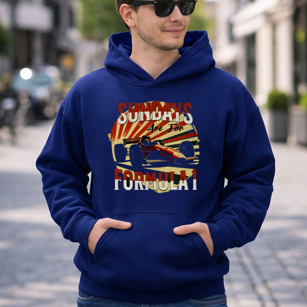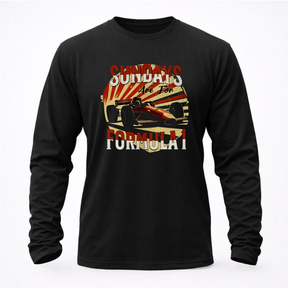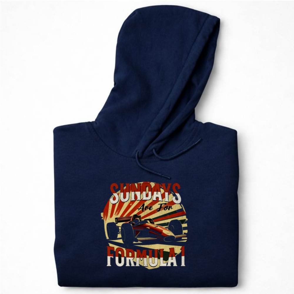 This design celebrates the adrenaline-fueled excitement of Sundays spent watching Formula 1 races. With dynamic racing car silhouettes and vibrant color rays, it evokes the energy and camaraderie of motorsport enthusiasts. It’s more than just apparel; it’s a tribute to the shared passion for speed and the unforgettable moments that unfold on race day.