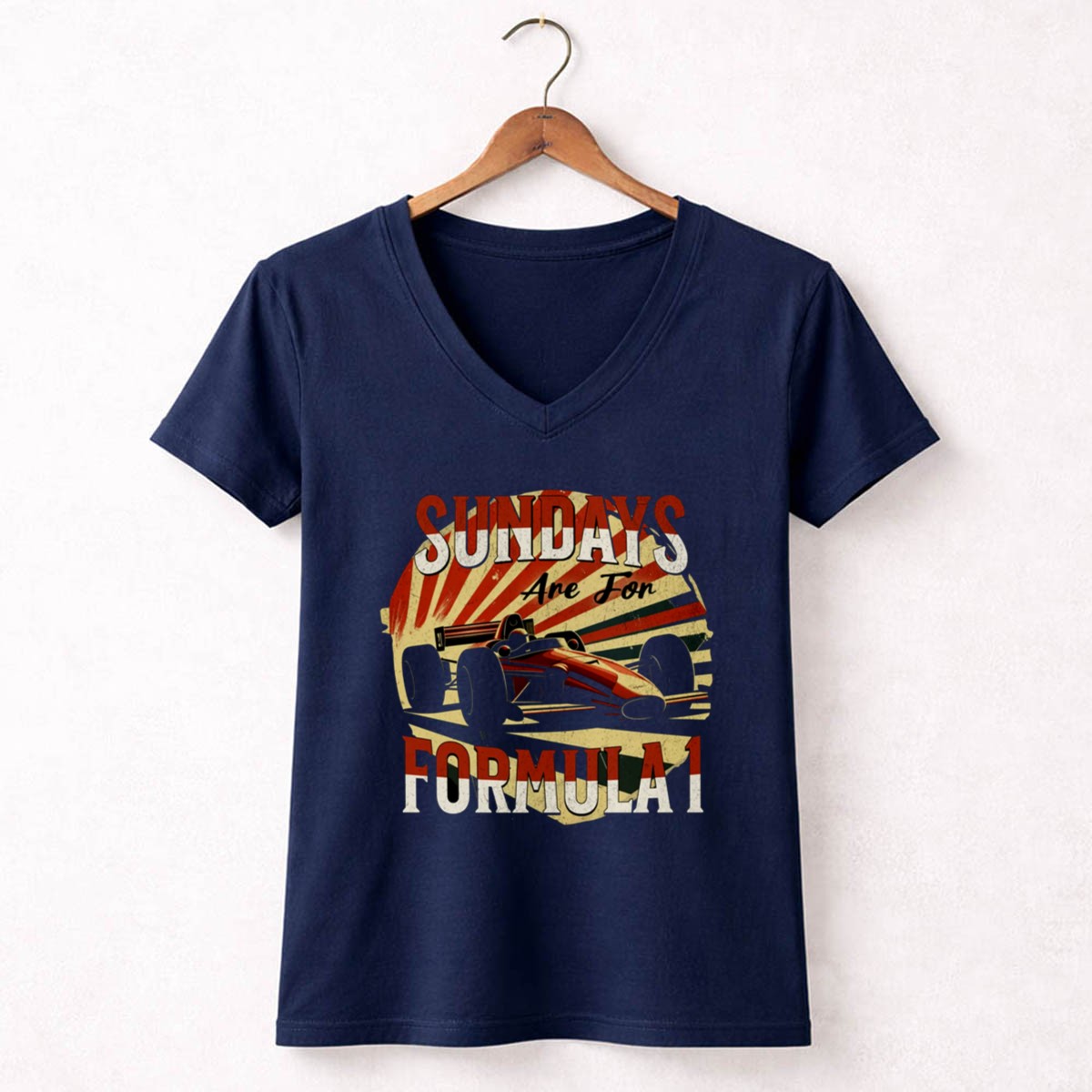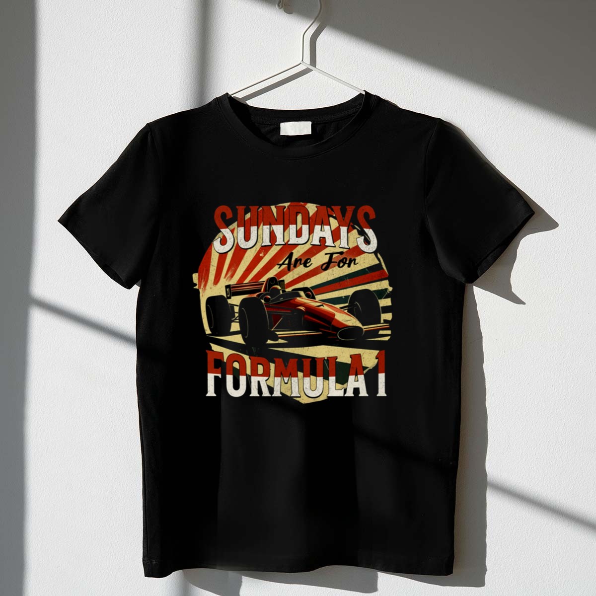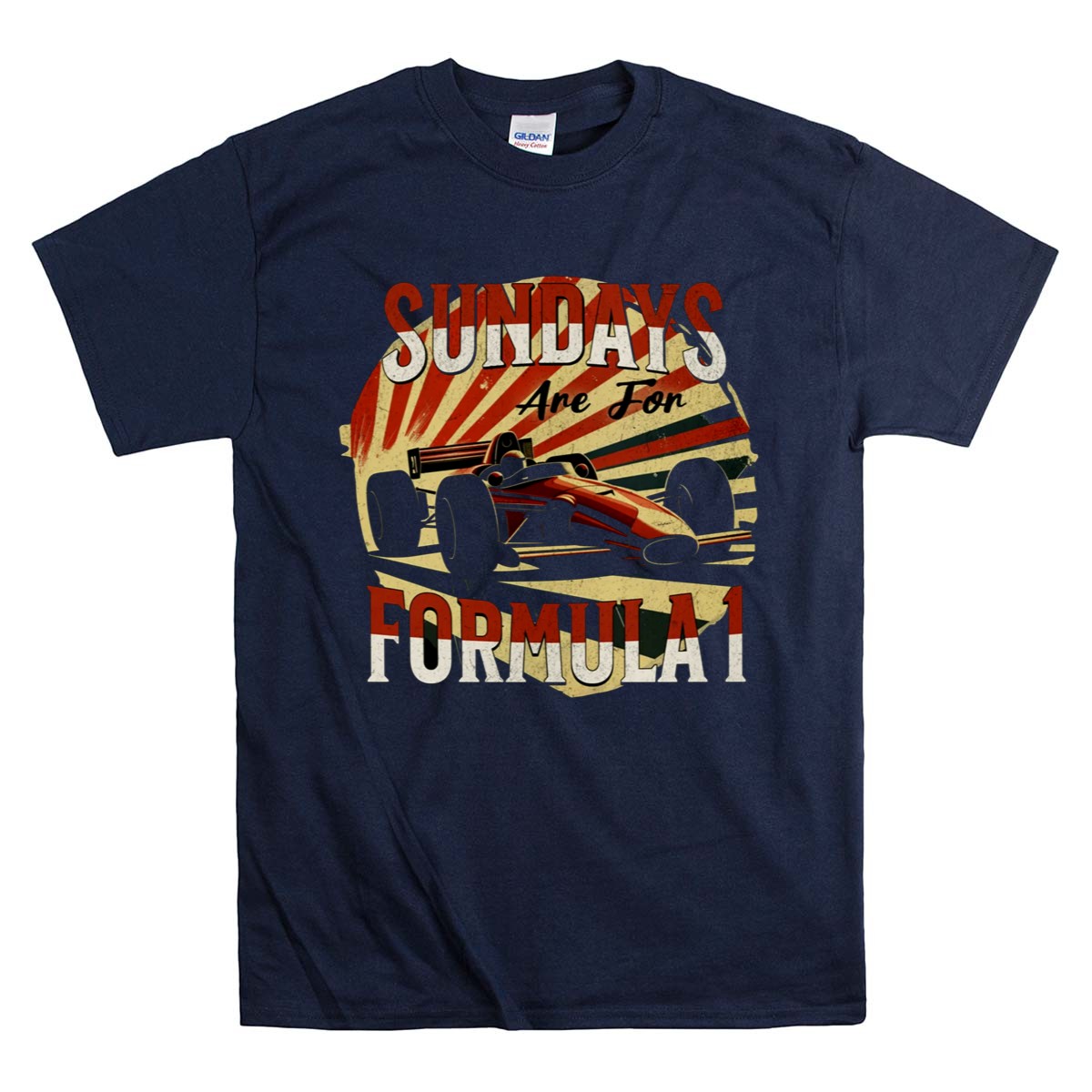 This design captures the essence of Formula 1 racing culture, blending retro graphic design with bold typography to evoke nostalgia for adrenaline-fueled Sundays. The vintage racing theme invites fans to unite in their shared passion, celebrating the excitement of race day and the iconic cars that have defined motorsport history.