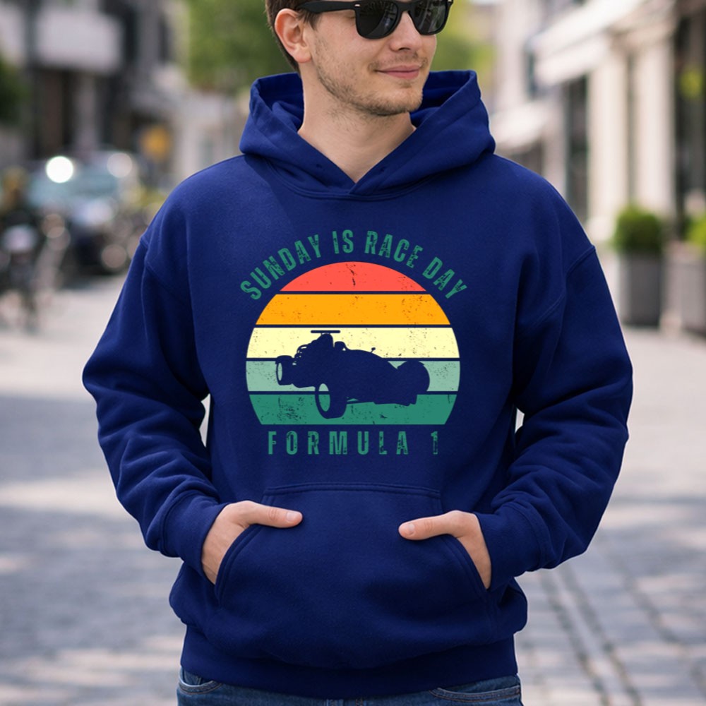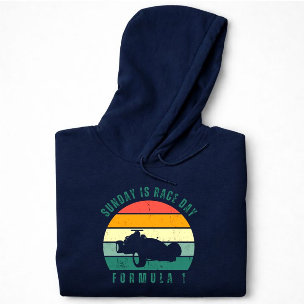 This design captures the essence of Sunday race days, blending retro racing vibes with a minimalist aesthetic. It evokes the thrill of watching iconic Formula 1 moments unfold, bringing families together in celebration of their shared passion for motorsport. Wearing this hoodie is a way to honor the legacy of racing while reliving those cherished memories.